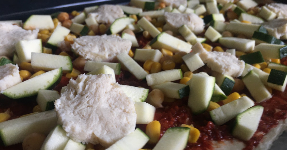 - Beleg met alles wat je lekker vindt (probeer niet te overdrijven, 2 - 3 ingredienten volstaan meestal) Top af met (plantaardige)pizzakaas of mozzarella. (zie echtgeniet.com)